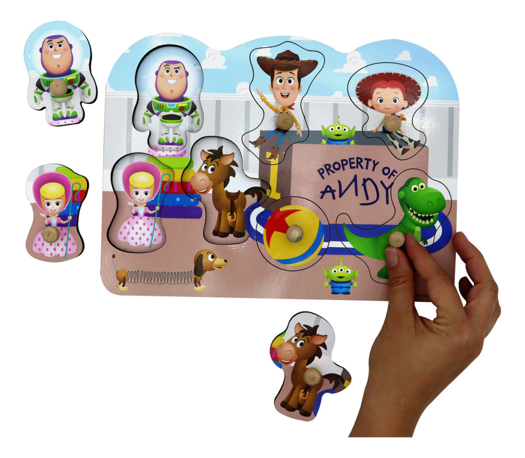 1 Hermoso tablero y 7 piezas de madera super resistentes con forma de personajes de Toy Story