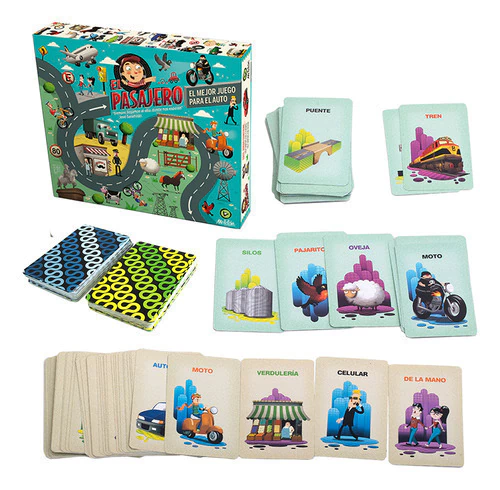 EL PASAJERO es el juego perfecto para tener en la guantera del auto. Consiste en dos mazos de 40 cartas, uno para la ruta y otro para la ciudad, con ilustraciones que los chicos deben encontrar mirando a través de la ventana. Se puede jugar solo, en equipos, o entre todos los pasajeros. El mejor antídoto para los viajes largos y el “¡¿cuánto falta para llegar?!”. Un juego de cartas para chicos desde los 3 años. Jugadores: 1 a 5 jugadores Tiempo: 20 minutos Edad: +3 años Ilustrado por: Tony Ganem