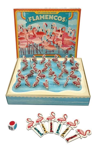 Flamencos es un juego de memoria y velocidad para los más chicos de la casa. ¡En este juego los flamencos usan medias debajo del agua! El objetivo del juego es coleccionar la mayor cantidad de flamencos de la laguna, buscando que sus medias coincidan con la característica que propone un dado al azar. En cada turno, se tira el dado y todos deben elegir un flamenco de la laguna, al sacarlos del agua, quien tenga un flamenco que coincide con el dado, gana el flamenco, los demás deben volver a ponerlos en su lugar en la laguna. ¡Quien logre llevarse más flamencos gana! Jugadores: 2 a 4 jugadores Tiempo: 15 minutos Edad: +3 años