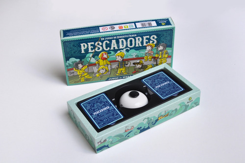 Pescadores es un juego de mesa de velocidad y observación. Un juego ideal para jugar en familia con jugadores de varias edades. Los pescadores quieren salir de pesca. En este juego de mesa la velocidad y la observación te harán ganar, pero debes estar atento y encontrar en los tres barcos el patrón o característica común que se repite. Hay pescadores de tres tamaños, tres cantidades, tres orígenes y tres colores. Si descubrís una característica común en los 3 pozos, apurate a tocar la campana y decirlo en voz alta para poder quedarte con todas las cartas y juntar tu tripulación de pescadores. Pescadores es un juego de mesa del reconocido autor Roberto Fraga, que Maldón edita exclusivamente para el mercado latinoamericano. Autor: Roberto Fraga Jugadores: 2 a 6 jugadores Tiempo: 15 minutos Edad: +6 años Ilustrado por: Szoka