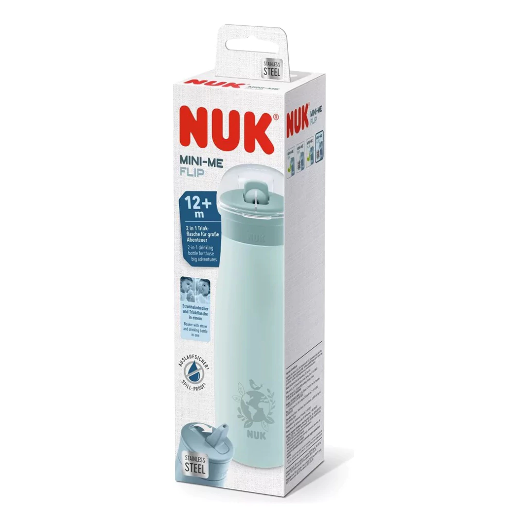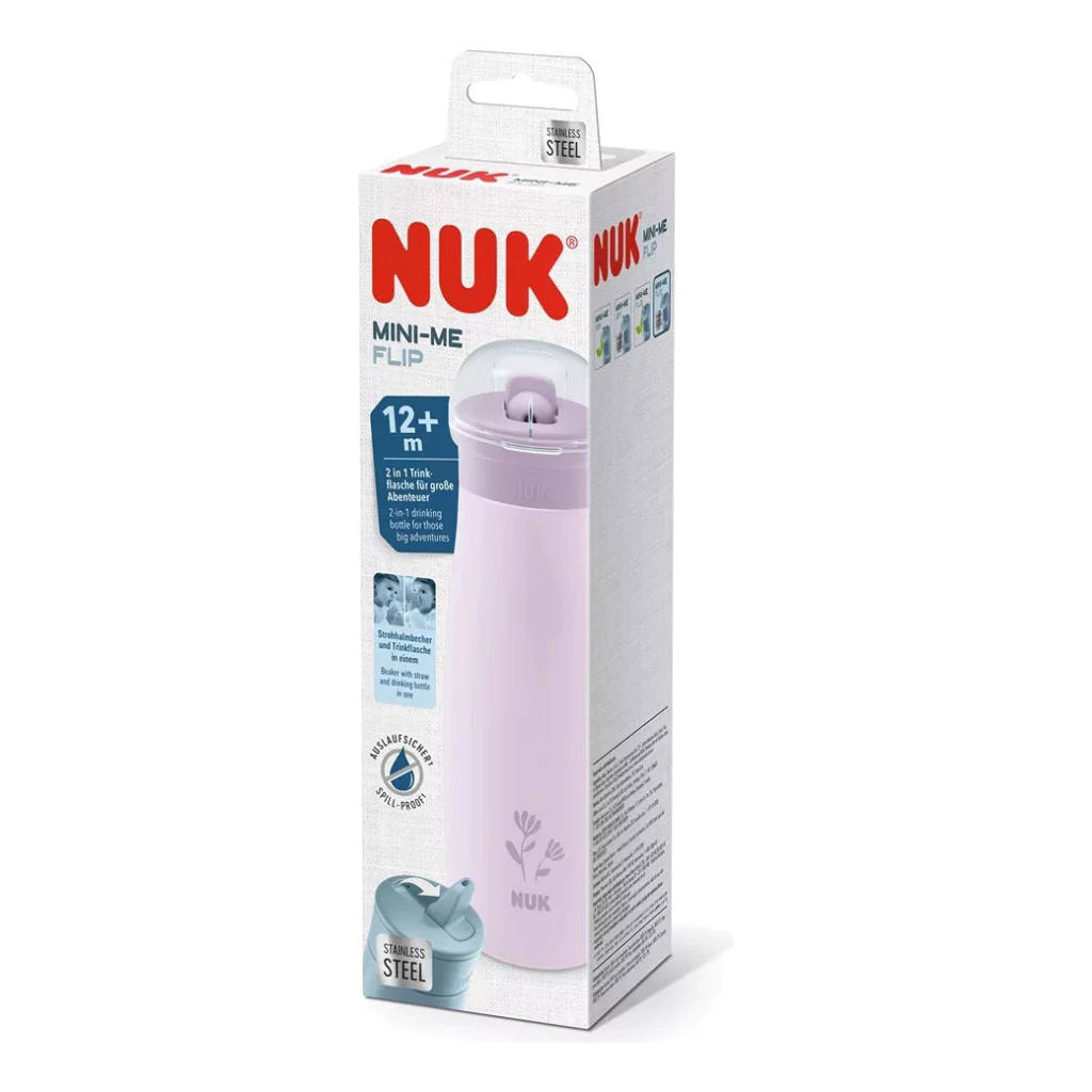 Es agradable cuando tu peque no es el único al que le gusta su botella. La nueva NUK Mini-Me Flip para niños a partir de 12 meses. Apta para niños, de forma moderna y minimalista. Práctica y elegante. Con el innovador top 2 en 1, tu peque podrá elegir si utilizar la pajita o no. Parte superior resistente a los mordiscos: resiste a los pequeños dientes afilados. Una clara apuesta por la sostenibilidad y la calidad.